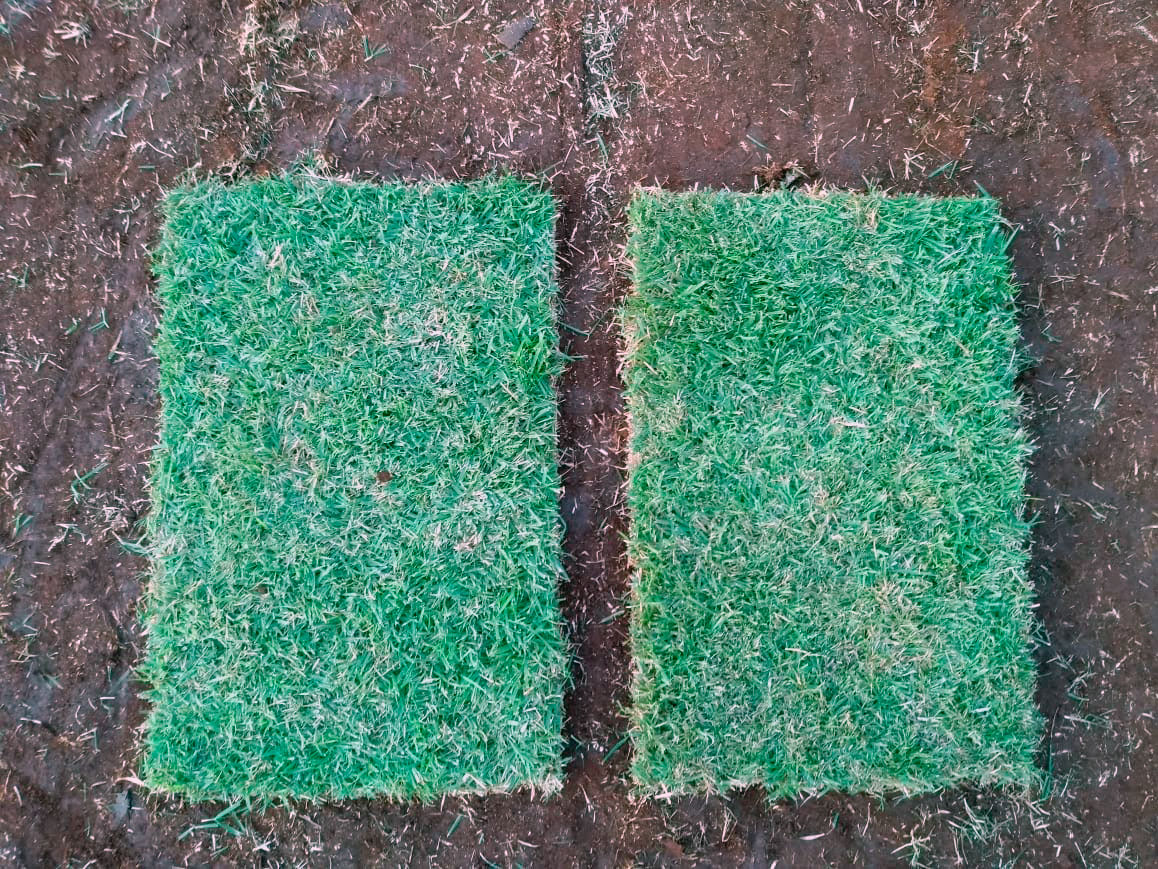 Grama Esmeralda, São Carlos, Bermudas, Santo Agostinho e Coreana em tapetes cortados à máquina, medida 62,5 x 40 cm.